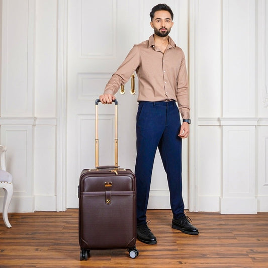Luggage Synthetic Softsided Luxury Suitcase Spinner 4 Wheel Trolley Bag Travel Laptop Roller Case - 56 Cm (Brown), H-56 Centimeters