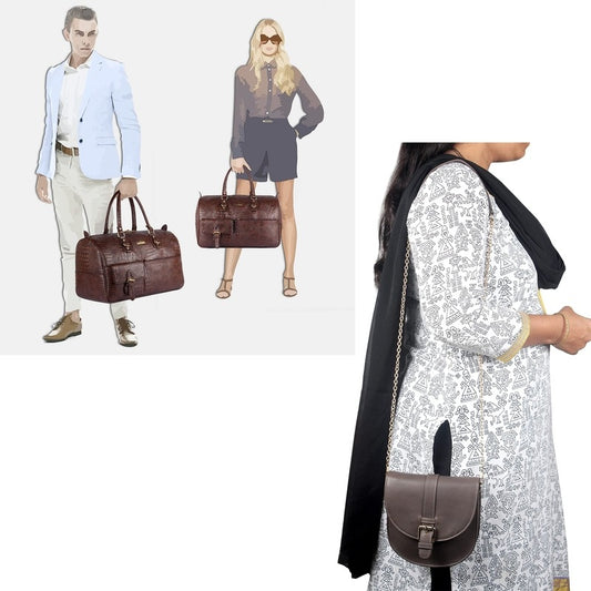 The Clownfish Combo of Crocodile Leatherette 34 Ltr Travel Duffle Bag (Dark Brown) & The Clownfish Adah Genuine Leather Sling bag for Women (Grey)