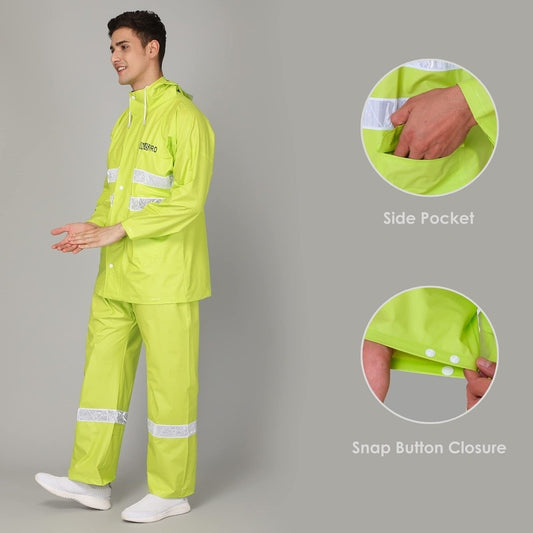 Men Rain Coat Waterproof - Reflective, Seam-Sealed | Jacket & Pants | 2XL | Green