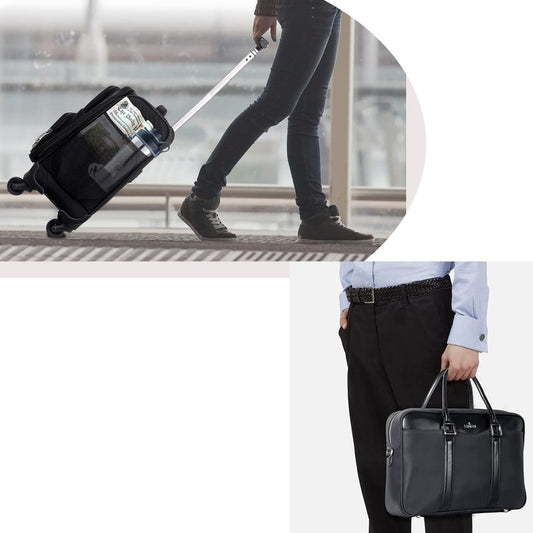 Combo of Wanderer Polyester 44 cms Jet Black Laptop Roller Case Onyx Faux Leather 15.6 inch Laptop Messenger Bag (Black)