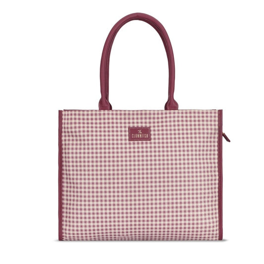 Moda Collection Multipurpose Faux Leather Handbag For Women 15.6 inch Laptop Bag Box Bag Tote Office Bag Shoulder Bag for Ladies College Girls (Dark Pink- Checks)