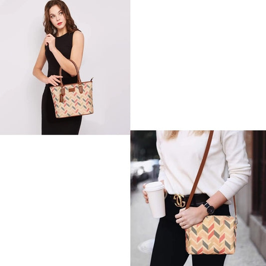 The Clownfish Combo of Lorna Printed Handicraft Fabric Handbag and Aahna Polyester Crossbody Sling bag for Women (Brown)