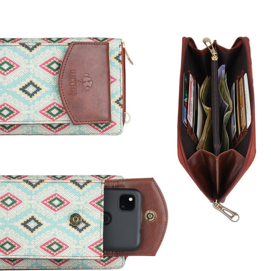 Fashionista Printed Handicraft Fabric Wallet - Slim & Chic Design | Mobile Pocket | Sky Blue-Diamond Design