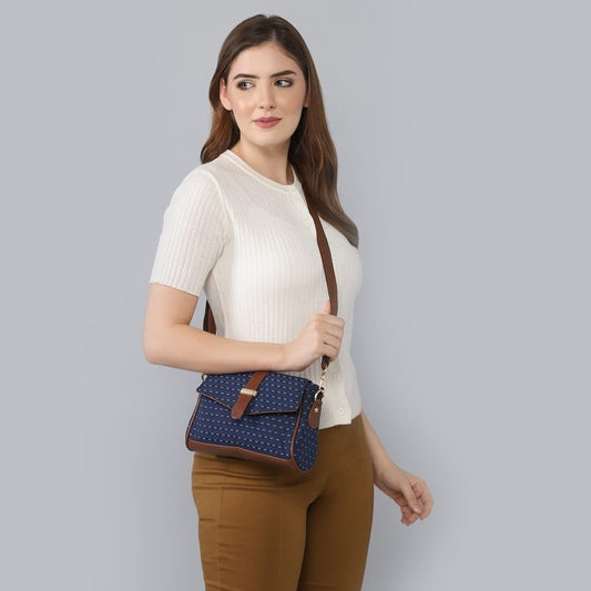 Nyra Polyester Crossbody Sling bag for Women Casual Party Bag Purse with Adjustable Shoulder Strap and Printed Design for Ladies College Girls (Blue)