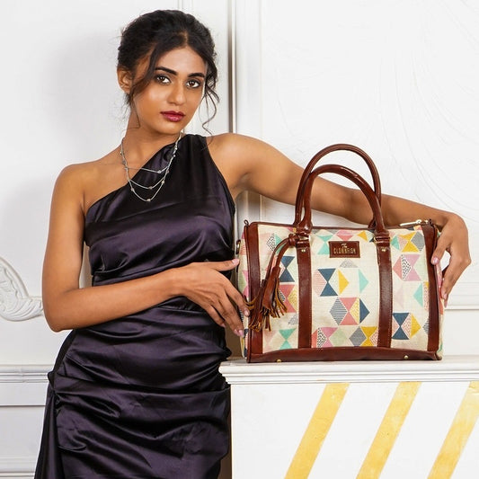 Lorna Printed Handicraft Fabric Handbag for Women Office Bag Ladies Shoulder Bag Tote For Women College Girls (Multicolour)