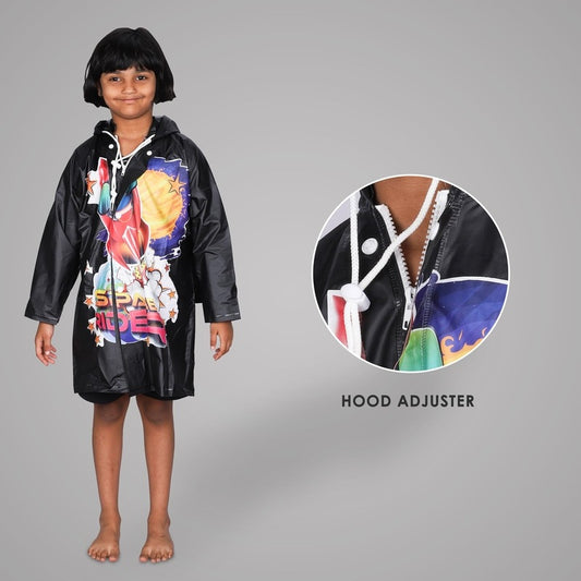 Kids Waterproof PVC Longcoat with Adjustable Hood | Extra Space for Backpack | 5-6 Years | Jet Black