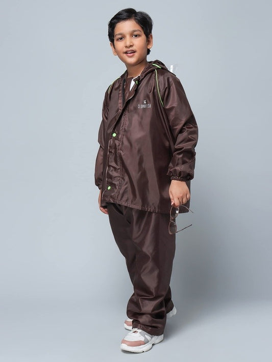 Duke Series Kids Waterproof Polyester Double Coating Reversible Raincoat with Hood and Reflector Logo at Back. Set of Top and Bottom. Printed Plastic Pouch. Kid Age-5-7 years (Black)