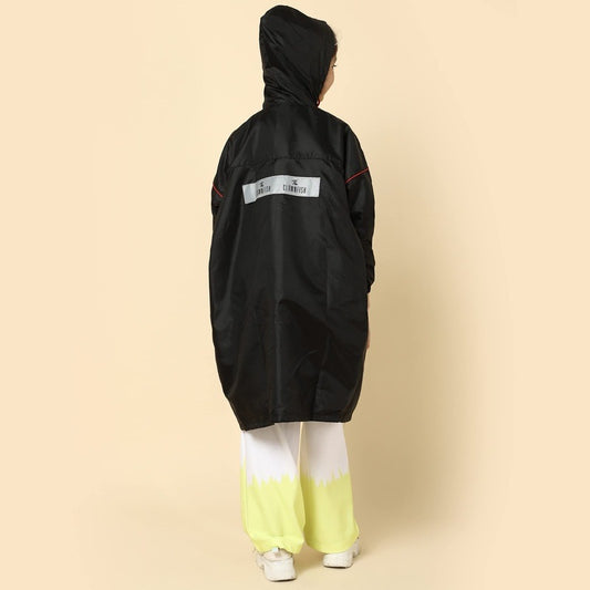 Men Oliver Series Kids Waterproof Polyester Double Coating Reversible Standard Length Longcoat With Hood And Reflector Logo At Back. Printed Plastic Pouch 12 Years-13 Years(Black)