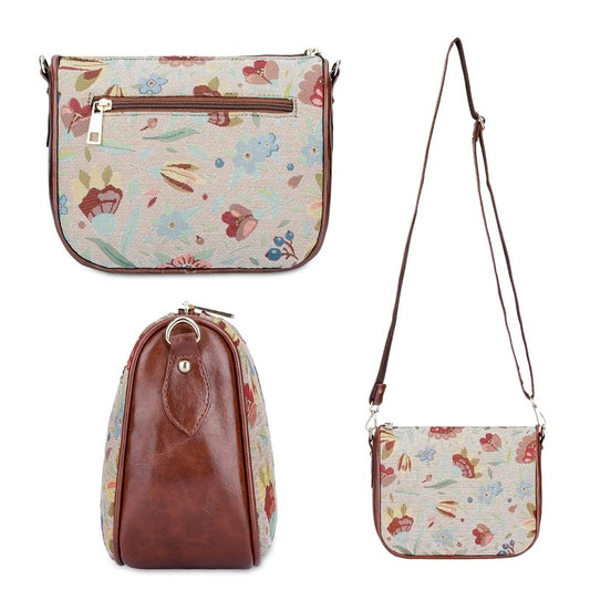 Garnet Series Tapestry Fabric Crossbody Sling Bag for Women Ladies Single Shoulder Bag Shoulder Belt (Sky Blue-Floral)
