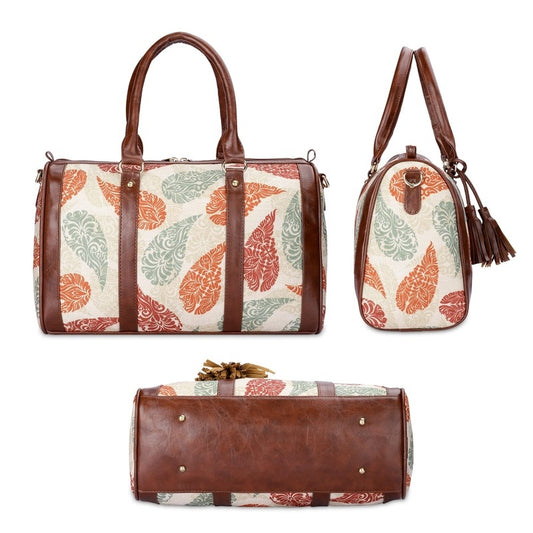 Lorna Printed Handicraft Fabric & Faux Leather Handbag Sling Bag for Women Office Bag Ladies Shoulder Bag Tote For Women College Girls (Peacock Blue-Floral)