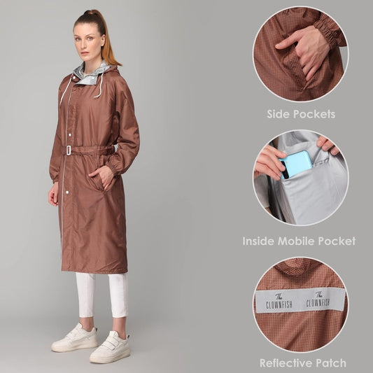 Polyester Long Length Raincoats For Women Waterproof Reversible Double Layer. Brilliant Pro Series (Brown, 2XL)