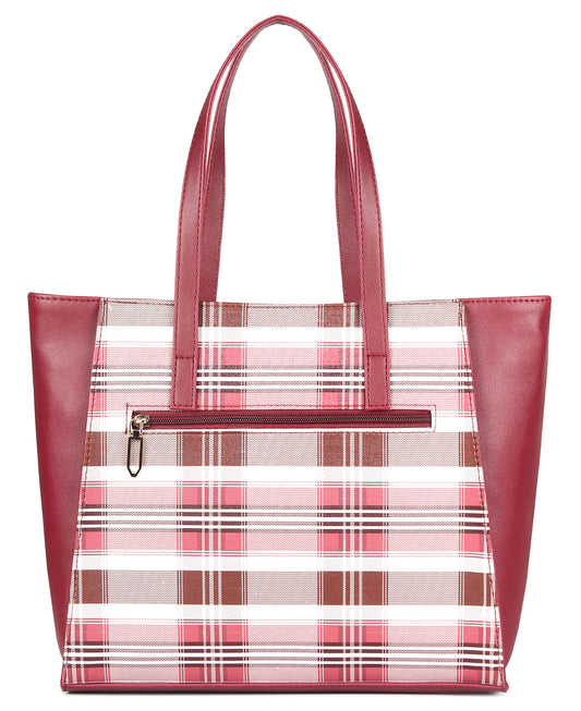 Agnes Handbag for Women Office Bag Ladies Shoulder Bag Tote For Women College Girls-Checks Design (Maroon)