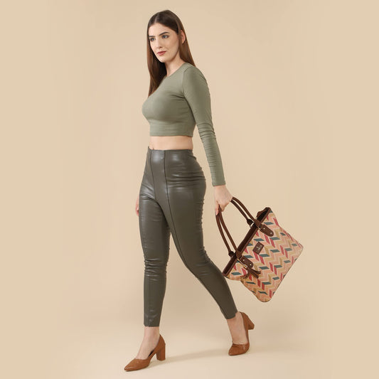 Percy Printed Handicraft Fabric Handbag for Women Office Bag Ladies Shoulder Bag Tote For Women College Girls (Cream)