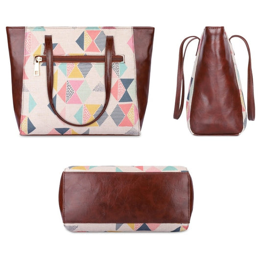 Lorna Printed Handicraft Fabric & Faux Leather Handbag Sling Bag for Women Office Bag Ladies Shoulder Bag Tote For Women College Girls (Multicolour-Triangle)