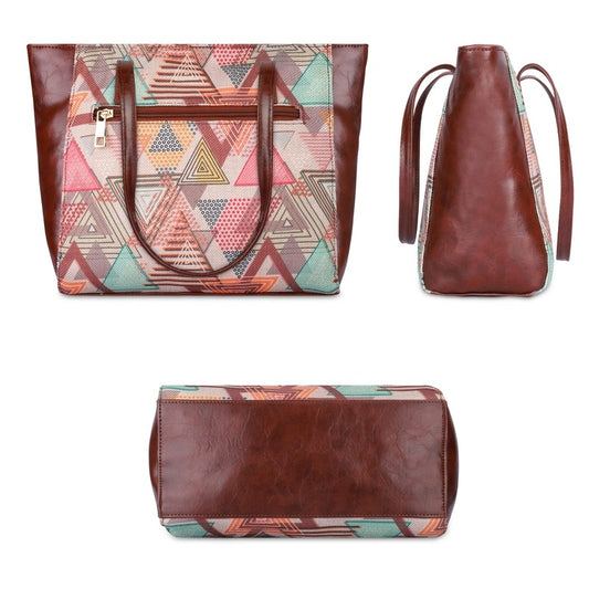 Valentine Printed Handicraft Fabric & Faux Leather Handbag for Women Office Bag Ladies Shoulder Bag Tote for Women College Girls (Multicolour-Triangle Design)