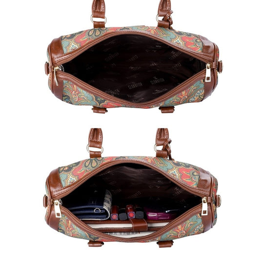 Lorna Printed Handicraft Fabric & Faux Leather Handbag Sling Bag for Women Office Bag Ladies Shoulder Bag Tote For Women College Girls (Dark Pink)