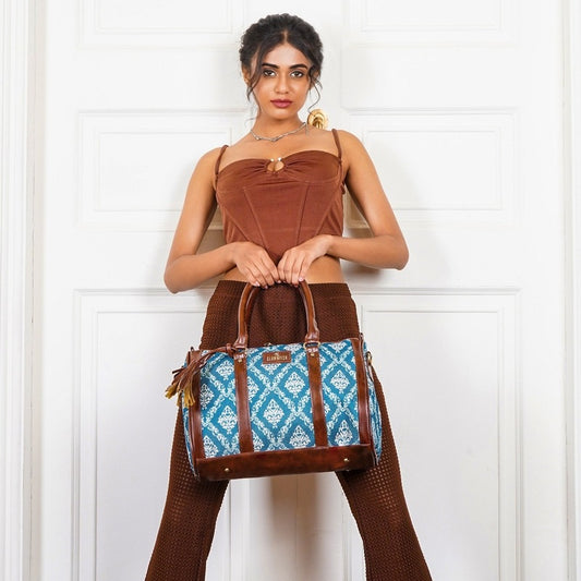 Lorna Printed Handicraft Fabric Handbag for Women Office Bag Ladies Shoulder Bag Tote For Women College Girls (Colour-BLUE)