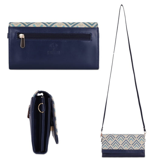 Women Erika Printed Handicraft Fabric & Vegan Leather Ladies Wristlet Purse Sling Bag With Multiple Card Slots & Shoulder Belt (White)