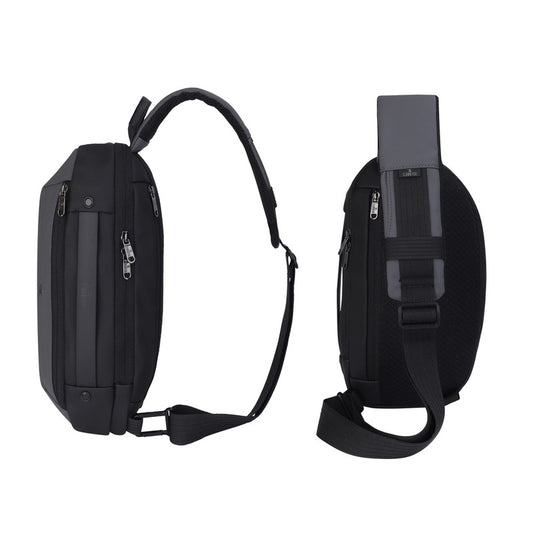 Water Resistant Polyester Unisex Travel Crossbody Sling Bag Chest Pack with USB charging port (Grey)