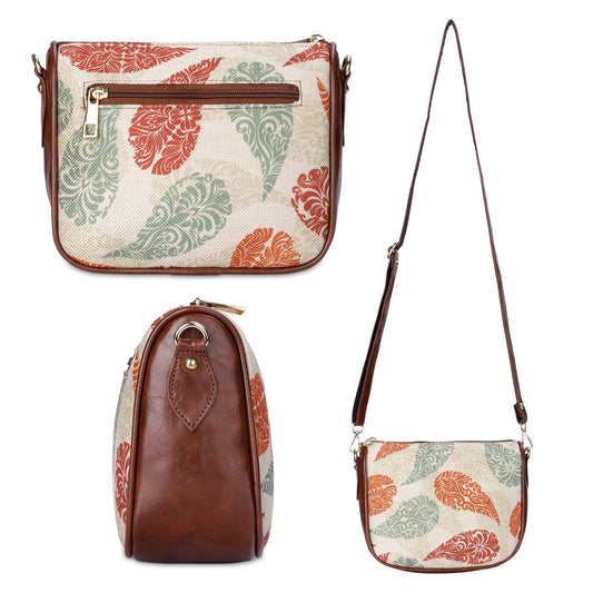 Garnet Series Printed Handicraft Fabric & Tapestry Crossbody Sling Bag for Women Ladies Single Shoulder Bag Shoulder Belt (Cream-Mango Design)