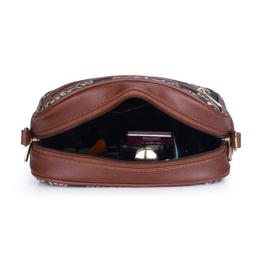 Isla Printed Handicraft Fabric Crossbody Sling bag for Women Casual Party Bag Purse with Adjustable Shoulder Strap and Printed Design for Ladies College Girls (Blue)