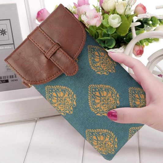 Flexiflare Series Mobile Sling for Women Printed Handicraft Fabric & Faux leather Casual Ladies Mobile Pouch Crossbody Bag for College Girls (Peacock Blue)