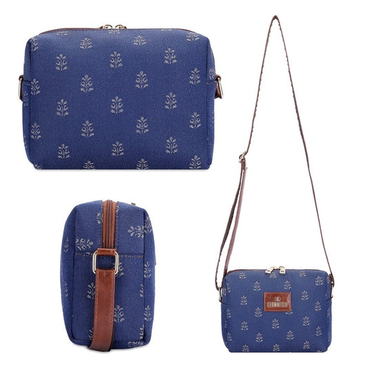 Combo Of Adelina Sling for Women Crossbody Bag for Ladies College Girls & Justina Tapestry Fabric & Faux Leather Handbag for Women (Denim Blue)