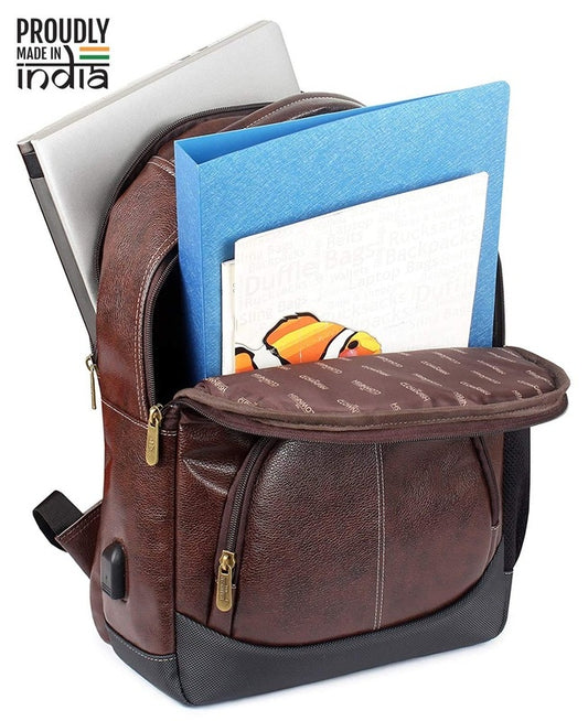 The Clownfish Fredrick 27 liters Faux Leather Mature Laptop Backpack for Men and Women for 15.6 Inch Laptops (Hickory)