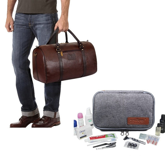 The Clownfish Combo of Magnum 34 liters Faux Leather Travel Duffle Bag (Chocolate Brown) & The Clownfish Travel Pouch Toiletry Bag Kit for Men & Women (Grey)Regular price ₹1,599Sale price ₹1,599 Regular priceUnit price / per₹4,498(64% off)Sale