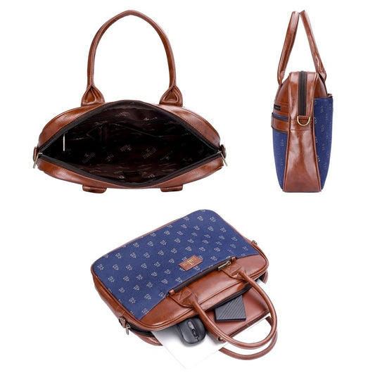 Deborah series 15.6 inch Laptop Bag For Women Tapestry Fabric & Faux Leather Office Bag Briefcase Messenger Sling Handbag Business Bag (Denim Blue)