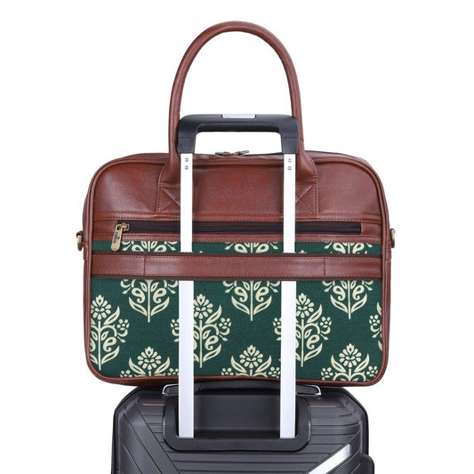 Deborah series 15.6 inch Laptop Bag For Women Printed Handicraft Fabric & Faux Leather Office Bag Briefcase Messenger Sling Handbag Business Bag (Light Green)