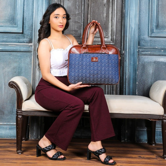 Deborah series 15.6 inch Laptop Bag For Women Tapestry Fabric & Faux Leather Office Bag Briefcase Messenger Sling Handbag Business Bag (Blue-Stripes)Regular price ₹1,599Sale price ₹1,599 Regular priceUnit price / per₹3,999(60% off)Sale