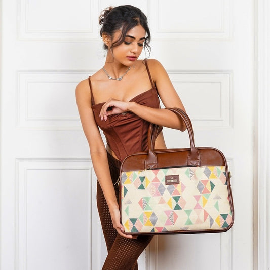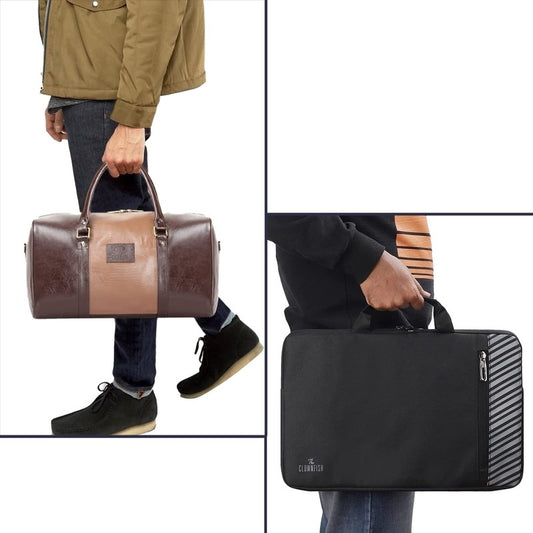 The Clownfish Combo of The Clownfish Ambiance Faux Leather 18 Inch/20 litres Brown Duffle Bag & Rex Series Polyester 14 inch Laptop Sleeve Tablet Case with Comfortable Carry Handles(Assorted Colour)