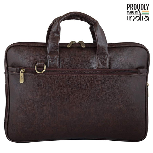 Glamour Faux Leather Slim Expandable Laptop Messenger Bag | 15.6 inch | Dark Brown