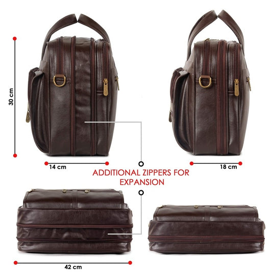 Faux Leather 15.6 inch Laptop Messenger Bag - Expandable, Stylish | Organizer Included | 17L | Chocolate