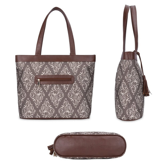 Casey series 15.6 inch Laptop Bag For Women Printed Handicraft Fabric & Faux Leather Office Bag Briefcase Hand Messenger bag Tote Business Bag (Brown)