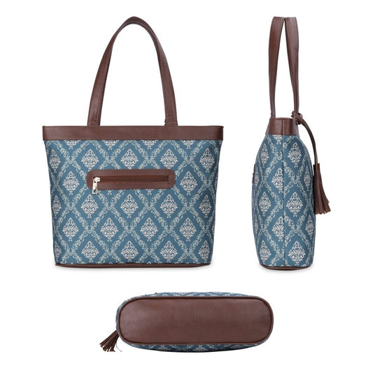 Casey series 15.6 inch Laptop Bag For Women Printed Handicraft Fabric & Faux Leather Office Bag Briefcase Hand Messenger bag Tote Business Bag (Blue)