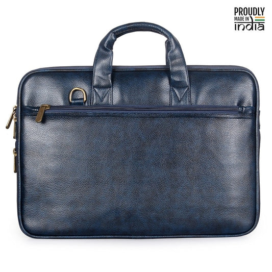 Cadmus Faux Leather Slim Expandable 12 inch Laptop Messenger Bag Laptop Briefcase (Blue)