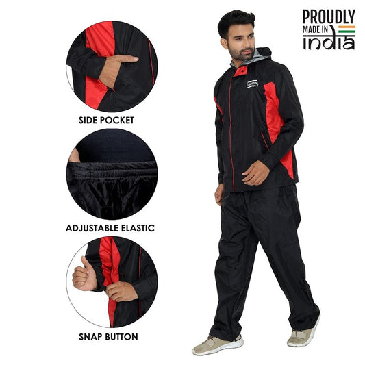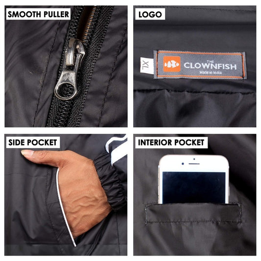 The Clownfish Gabriel Series Men's Waterproof Polyester Raincoat with Hood and Reflector Logo at Front & Back for Night Travelling. Set of Top and Bottom. Printed Plastic Pouch with Rope ( Orange, XX-Large)