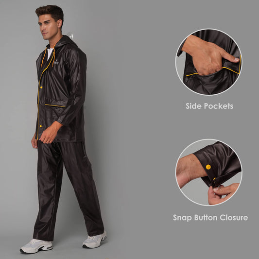 Monarch Pro Series Men's Waterproof Polyester Double Coating Reversible Raincoat with Hood and Reflector Logo at Back for Night Travelling. Set of Top and Bottom (Dark Brown, XXL)