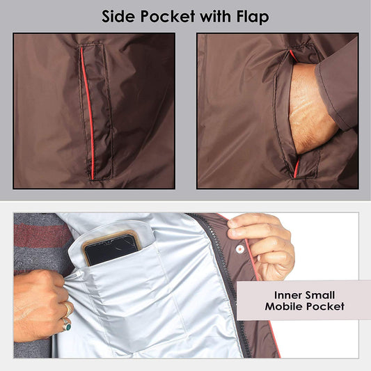 Rain Coat Waterproof Raincoat With Pants Polyester Reversible Double Layer Rain Coat For Men Bike Rain Suit Standard Length Jacket Suit Inner Mobile Pocket With Storage Bag(Brown Xxl)