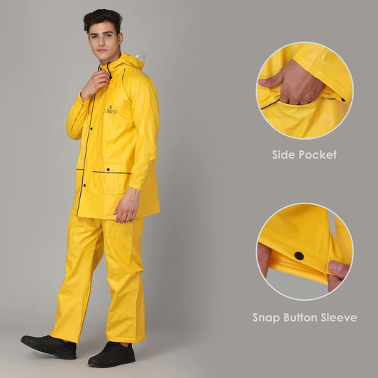 Roberto Series PVC Rain Coat for Men Waterproof for Bike with Hood Raincoat for Men. Set of Top and Bottom Packed in a matching Storage Bag (Yellow with black piping, X-Large)