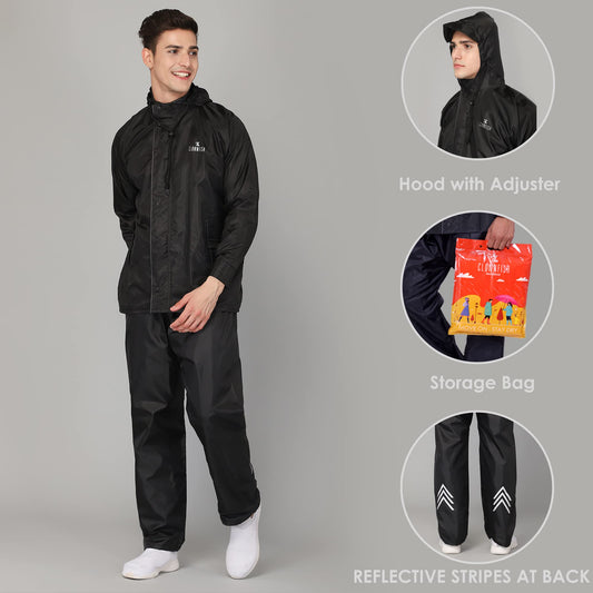 Men Rain Coat - Waterproof, Reversible, Double Layer | Includes Pants | XXL | Black