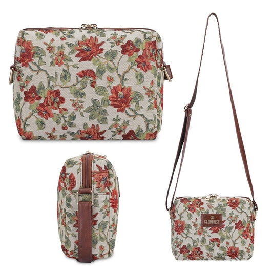 Combo of Linda Series Sling for Women Crossbody Bag for College Girls Lorna Tapestry Fabric & Faux Leather Handbag Sling Bag for Women (Brown-Floral)