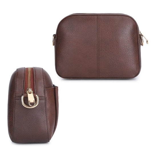 Genuine Leather Sling Bag for Women - Zip Closure, Chain Strap | Lightweight | Capacity: 2.5L | Chocolate Brown