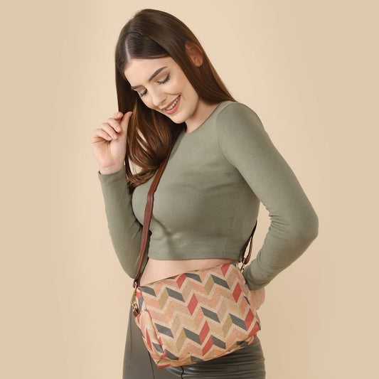 Combo Of Adelina Series Sling for Women Crossbody Bag for College Girls Lorna Tapestry Fabric & Faux Leather Handbag Sling Bag for Women (Beige)