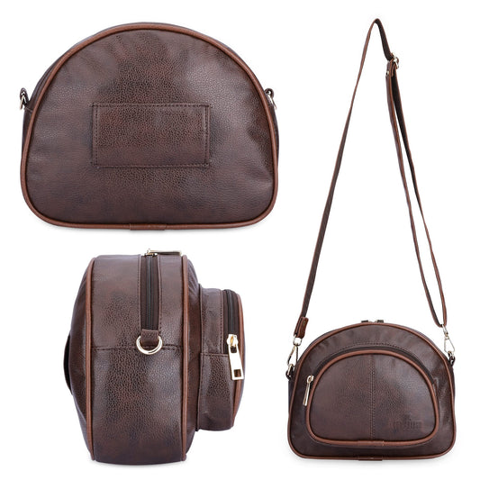 Eleganza Series Sling for Men & Women Melange Fabric & Faux leather Casual Unisex Single Shoulder Bag Crossbody Bag for College Girls Boys (Grey & Brown)
