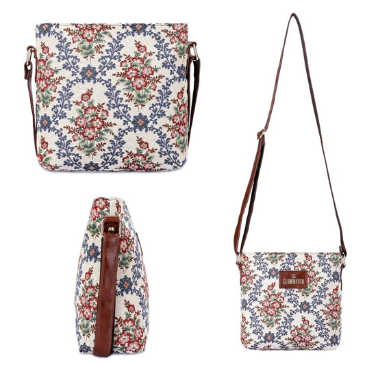 Combo Of Adelina Series Sling for Women Crossbody Bag for College Girls Lorna Tapestry Fabric & Faux Leather Handbag Sling Bag for Women (Off White-Floral)