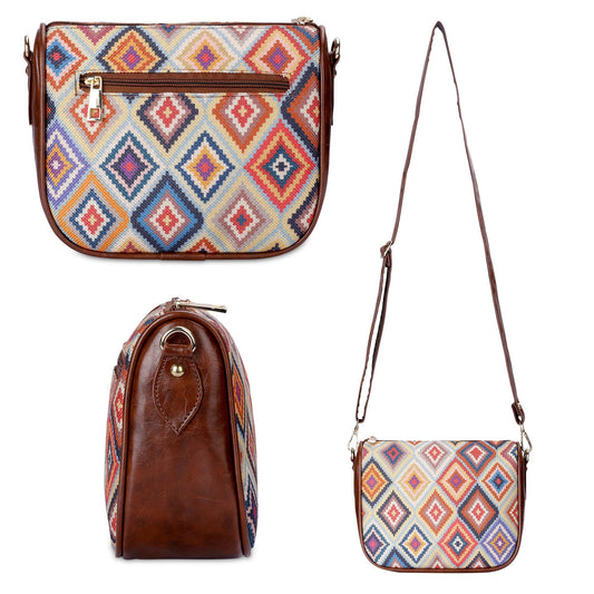 Garnet Series Printed Handicraft Fabric & Tapestry Crossbody Sling Bag for Women Ladies Single Shoulder Bag Shoulder Belt (Multicolour-Diamond)