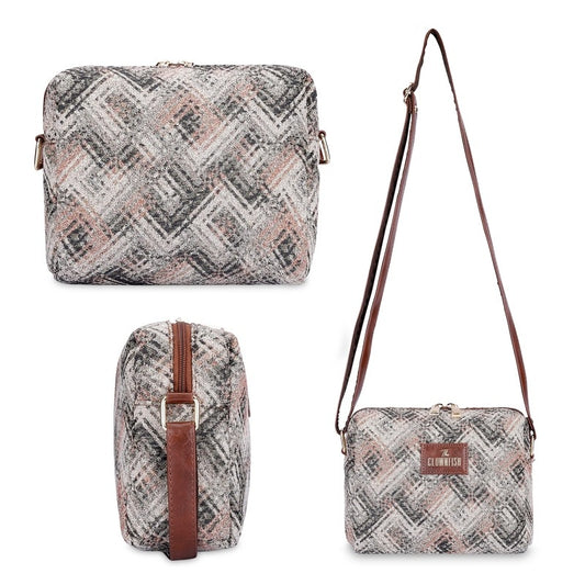 Aahna Polyester Crossbody Sling bag for Women Casual Party Bag Purse with Adjustable Shoulder Strap and Printed Design for Ladies College Girls (Dark Grey)